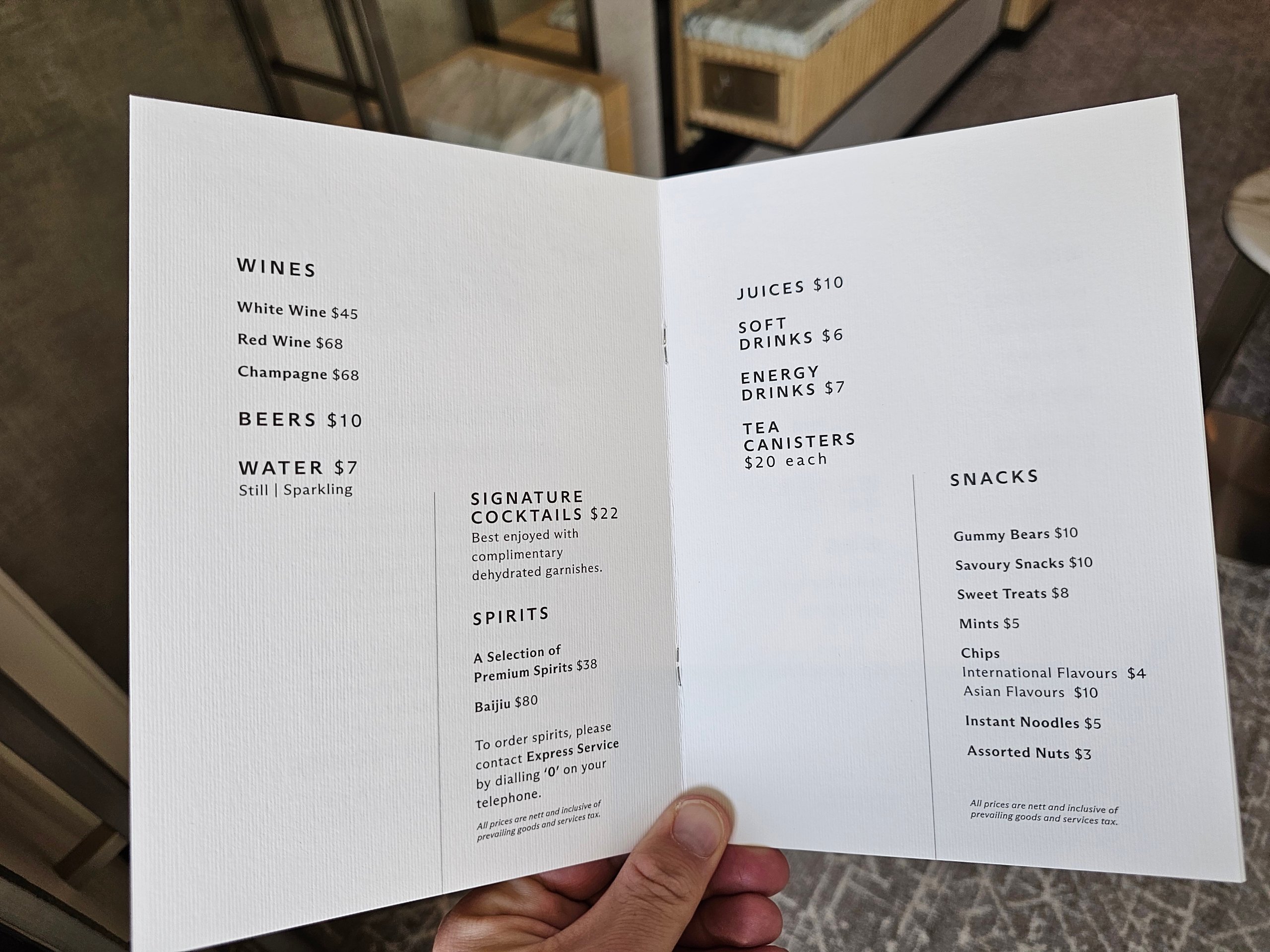 - bar koktail (koktail dikenai biaya, harga standar hotel sekitar 22 SGD)
