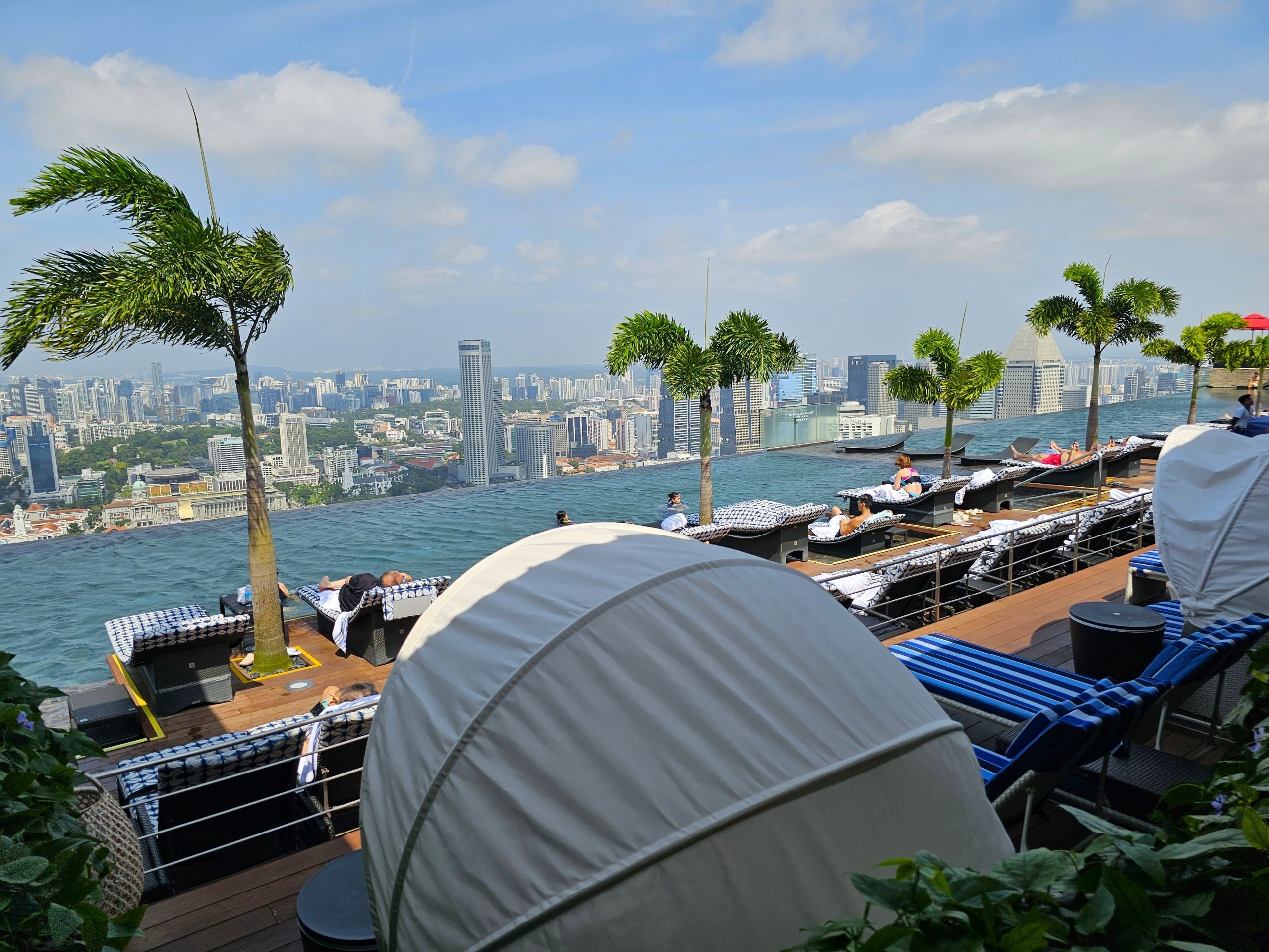 Dari ketinggian kolam renang, pusat kota Singapura ada di genggaman Anda. Dan jika Anda berjalan ke sisi lain dari atap, Anda dapat melihat Gardens by the Bay dan ratusan kapal kargo dengan latar belakang laut lepas.