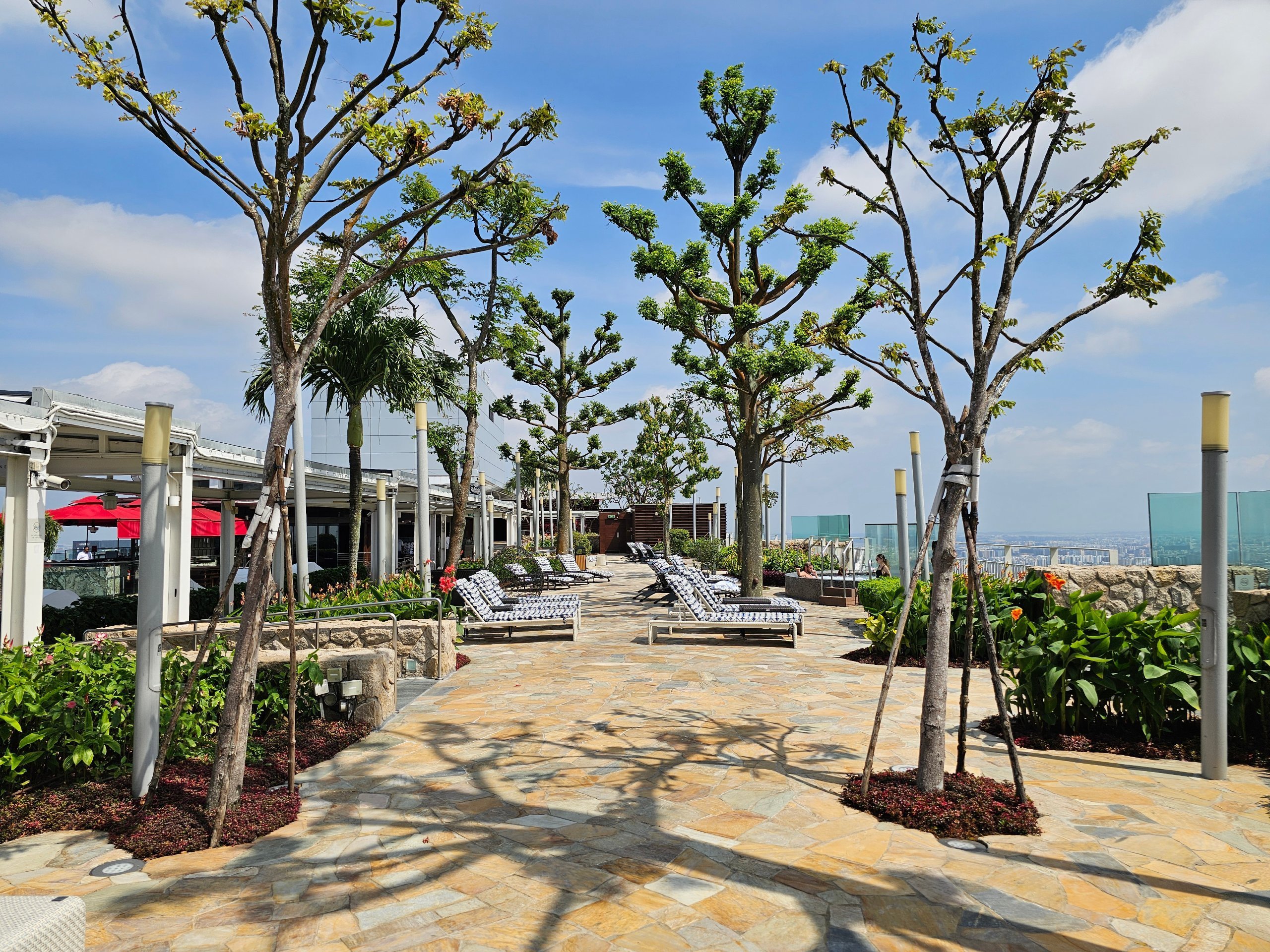 Kursi berjemur juga terletak di sisi lain dari atap di mana tidak ada kolam renang dan lebih tenang.