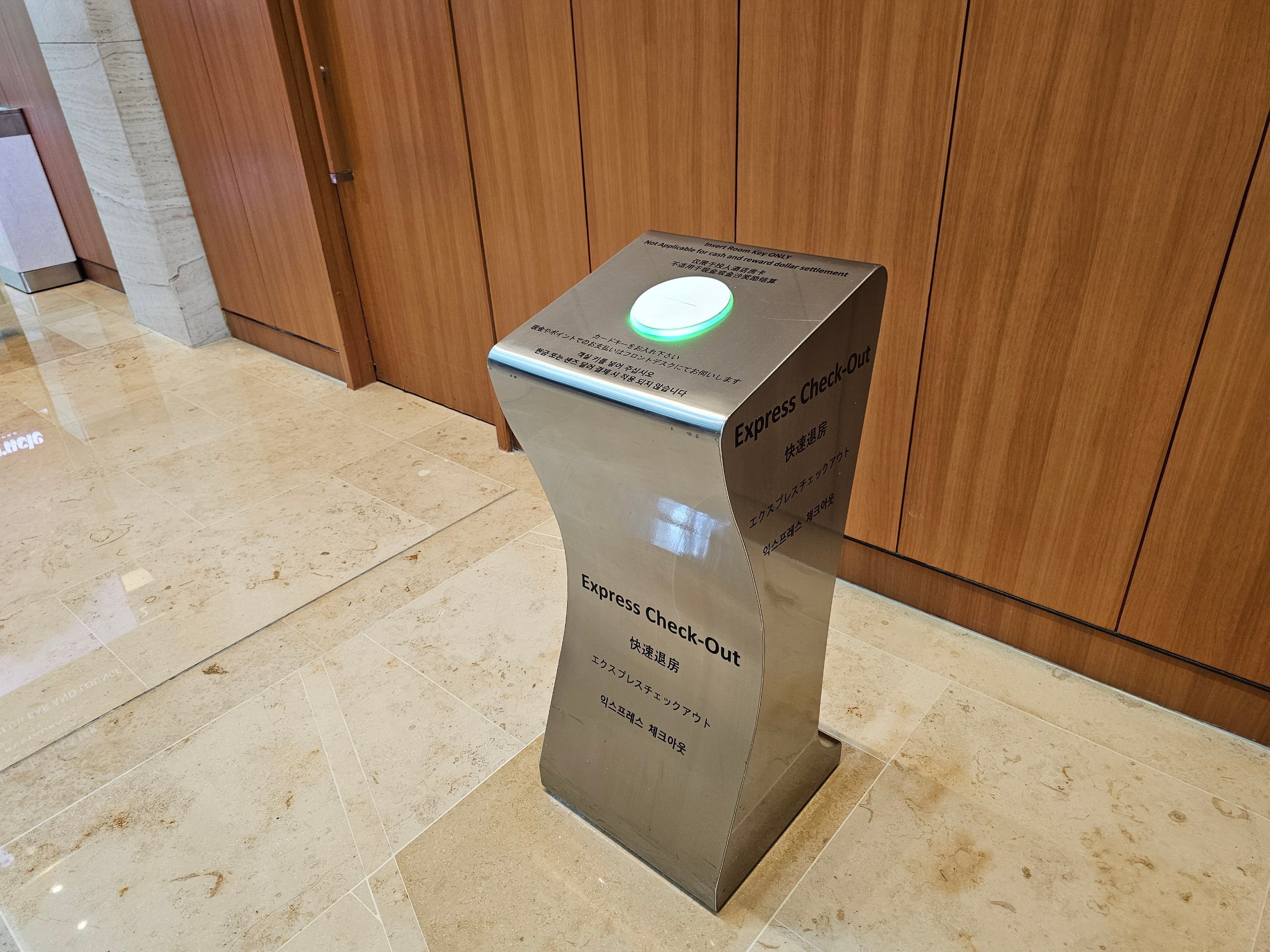 Check-out sangat cepat dan ada juga check-out cepat tanpa kontak di mana Anda cukup memasukkan kartu kamar Anda ke dalam mesin.