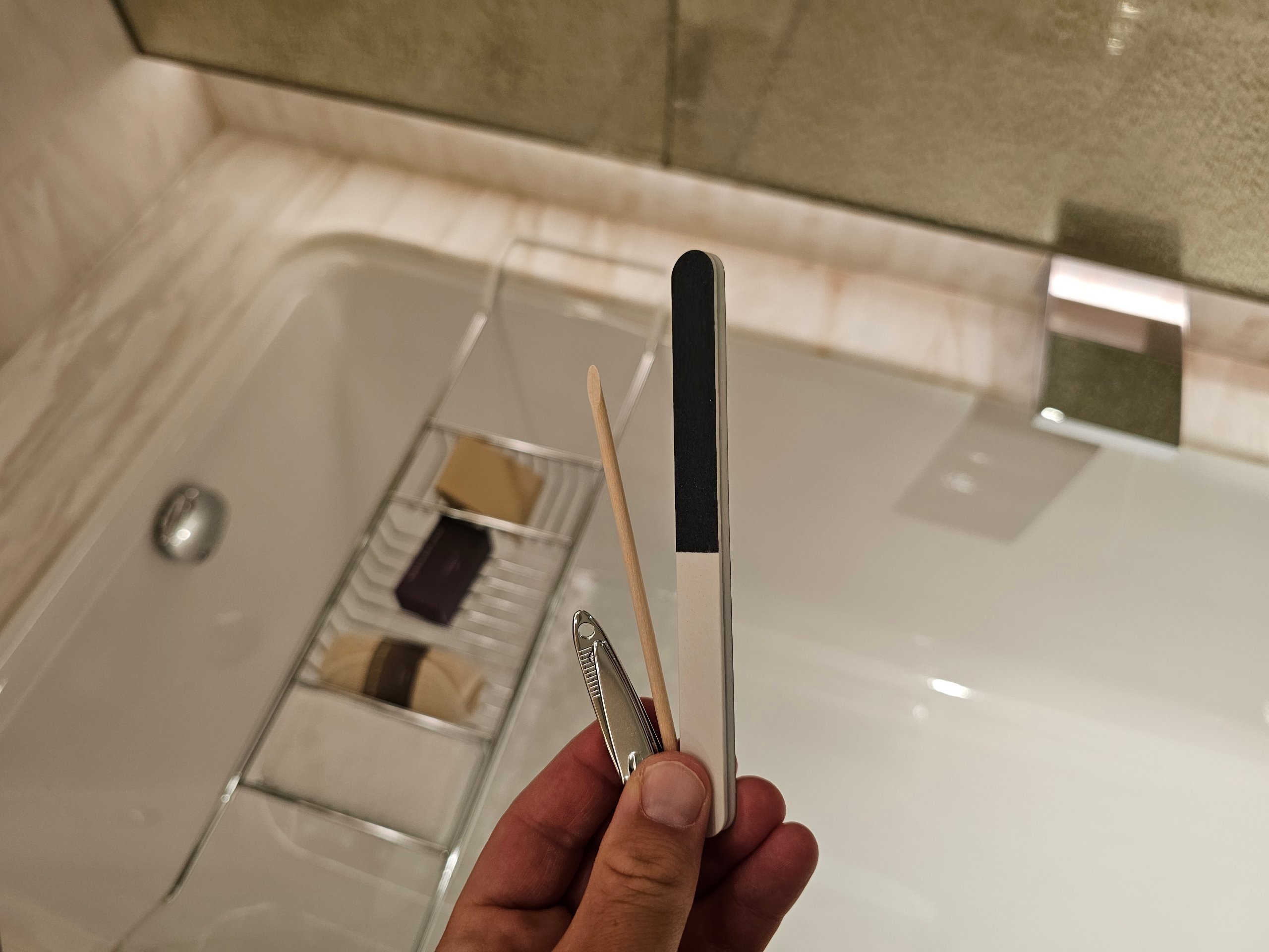 - perlengkapan mandi yang lengkap termasuk perlengkapan cukur, kotak untuk kawat gigi atau peralatan jahit kecil
