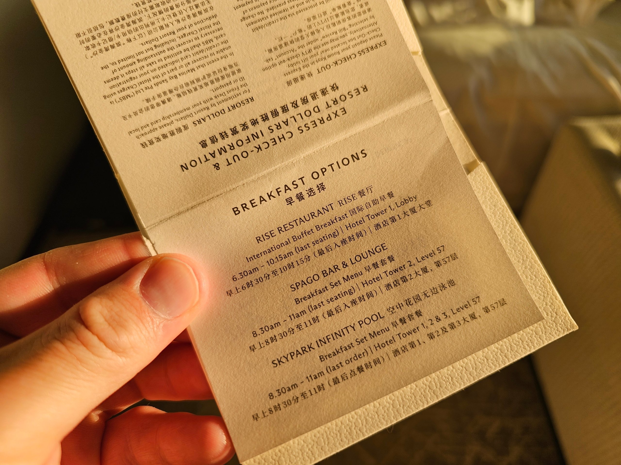 - perasaan menginap di hotel paling terkenal di dunia (bagi saya, Marina Bay Sands adalah ikon yang jauh lebih besar daripada The Plaza di New York)