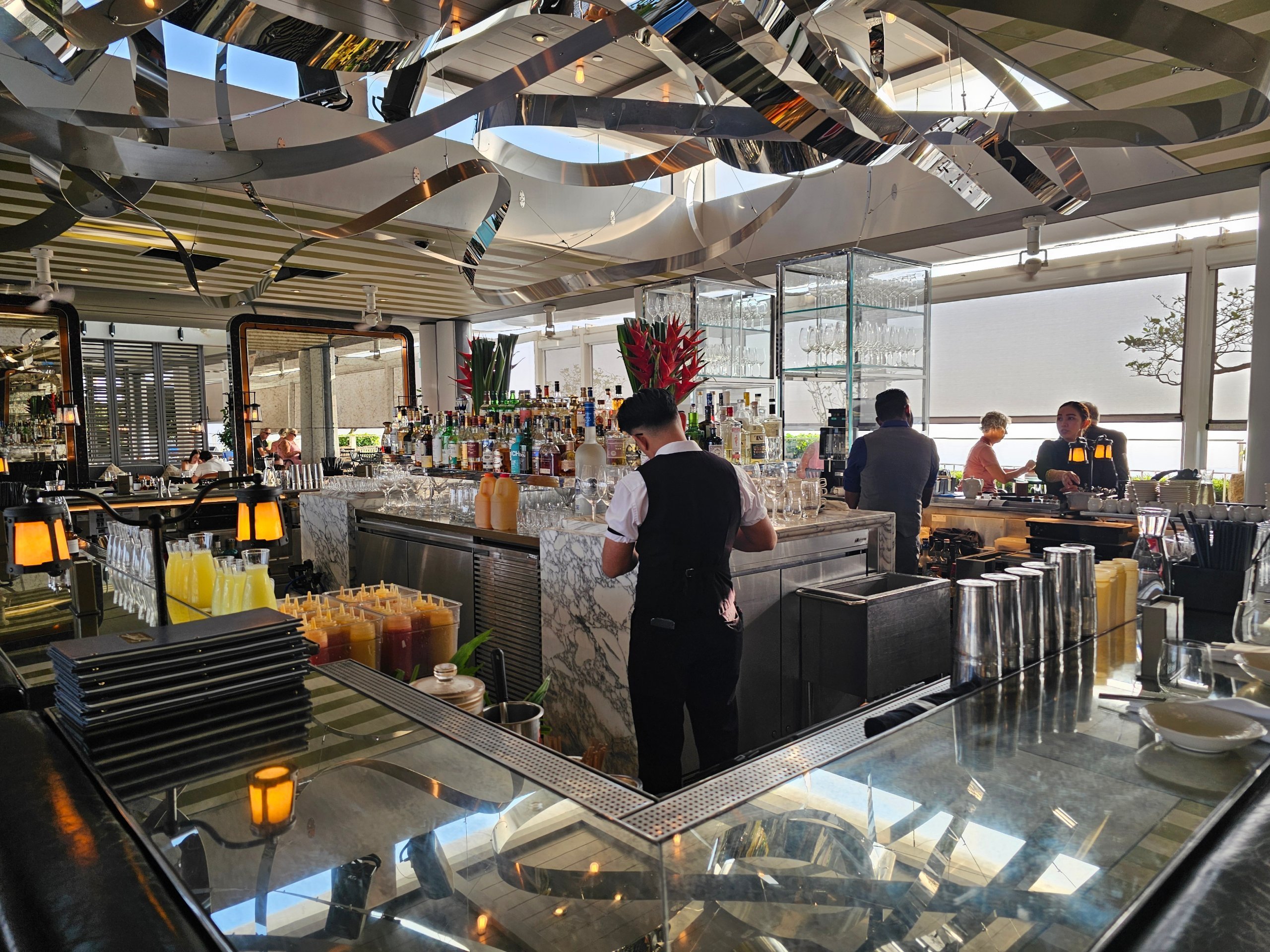 Anda dapat memesan apa pun dari Spago Pool Bar atau menggunakan staf yang selalu hadir melalui kode QR kapan saja.