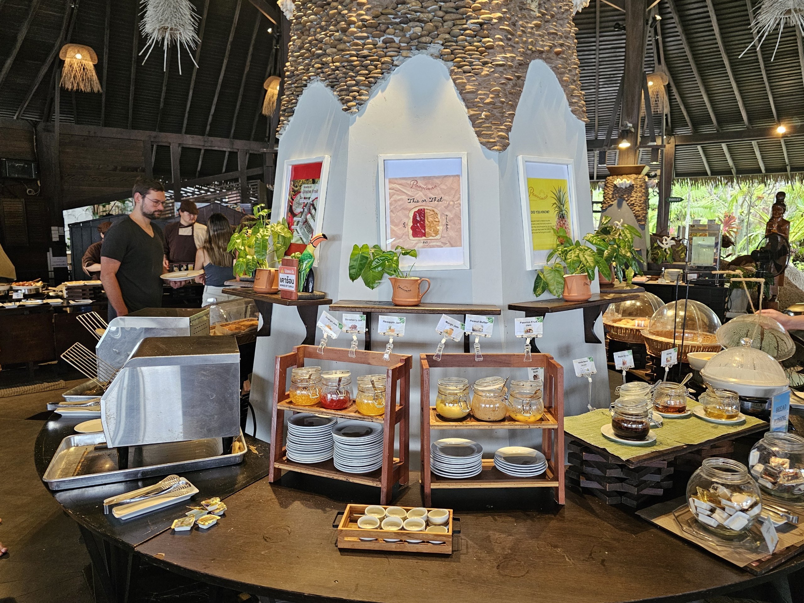 Sarapan di Panviman Resort Koh Phangan berlangsung di restoran utama di atas bukit yang menghadap ke laut.