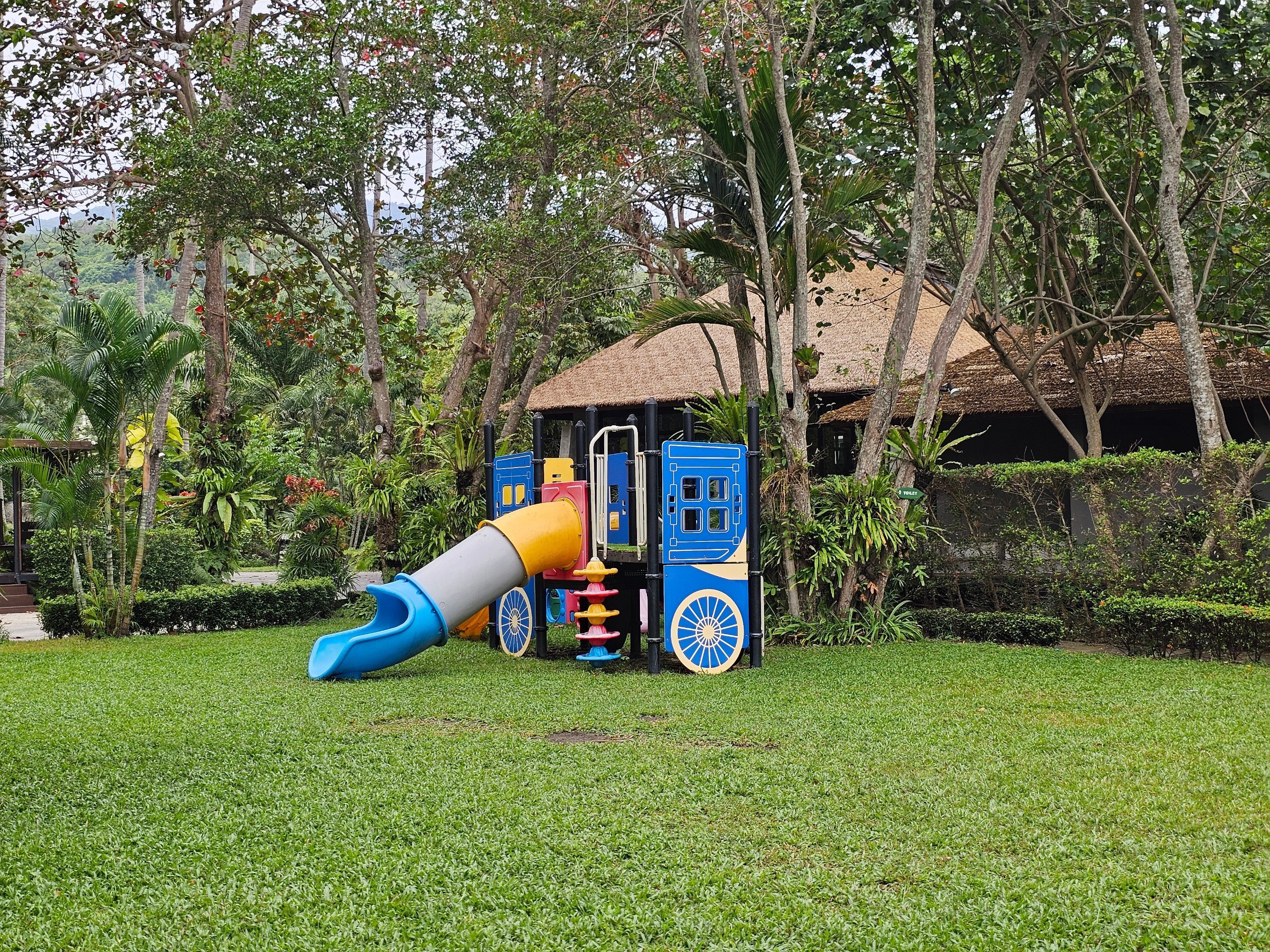 👉 Resor ini besar dan berbukit - Anda akan sering menggunakan kereta.