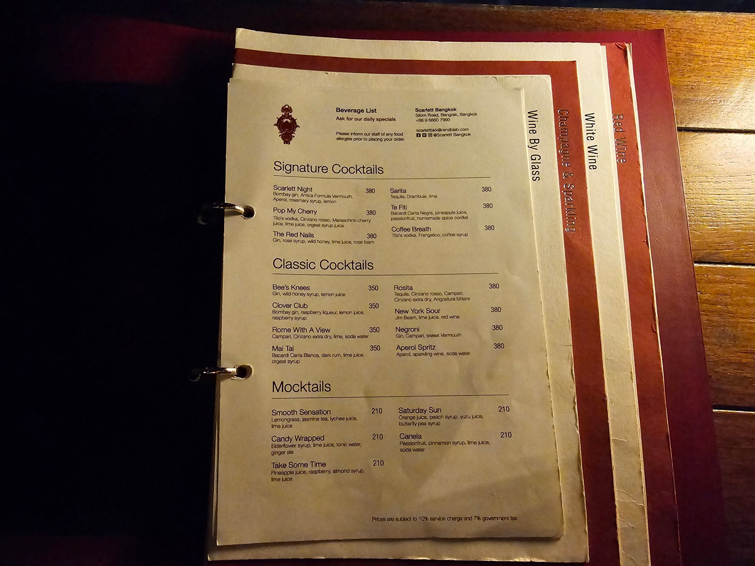 Kami hanya pergi ke Scarlett untuk minum-minum di malam hari dan itu cukup mengecewakan bagi kami. Kami lebih menikmati minuman kami di bar Bangkok lainnya yang kami jelaskan dalam artikel ini: