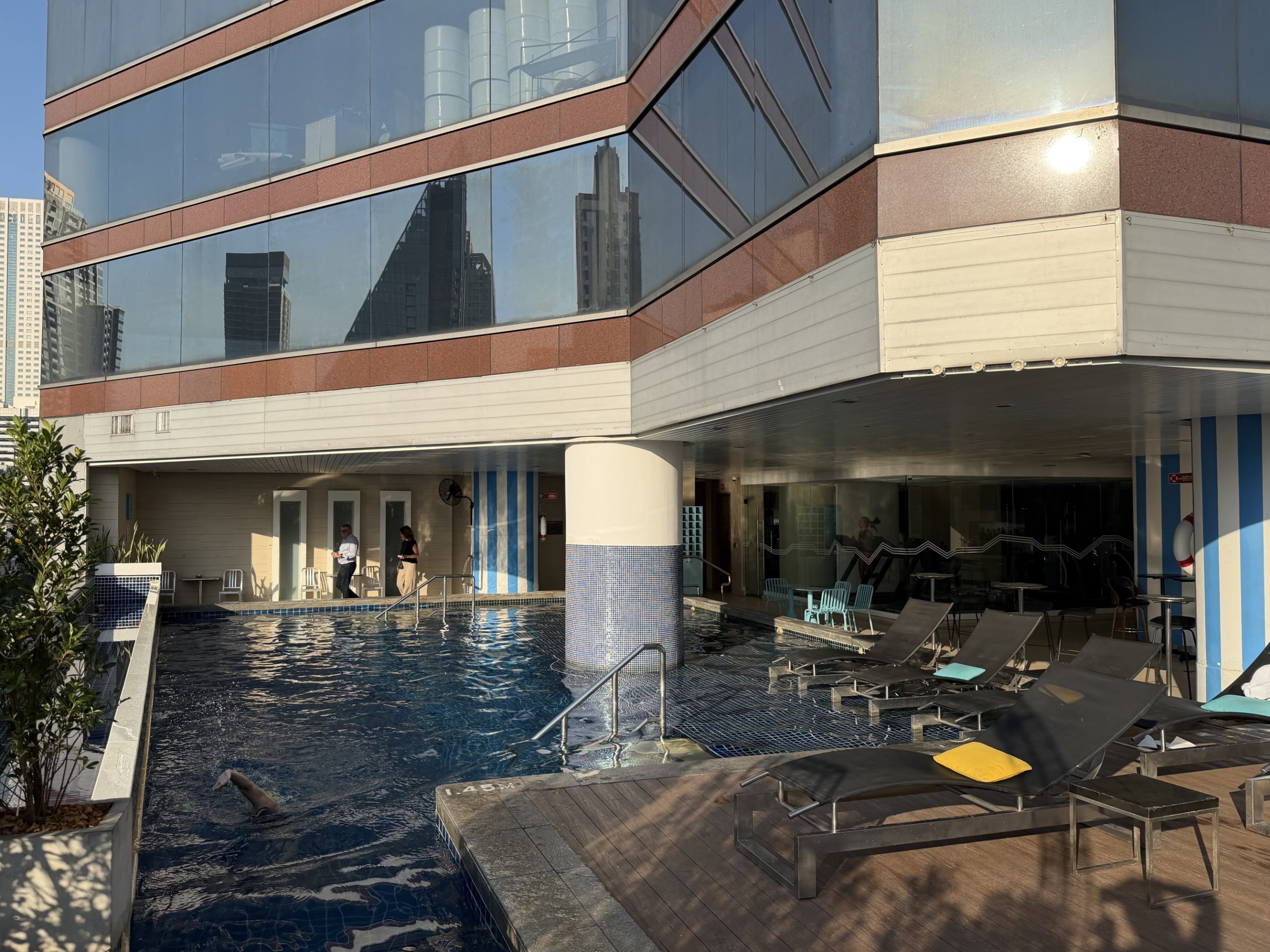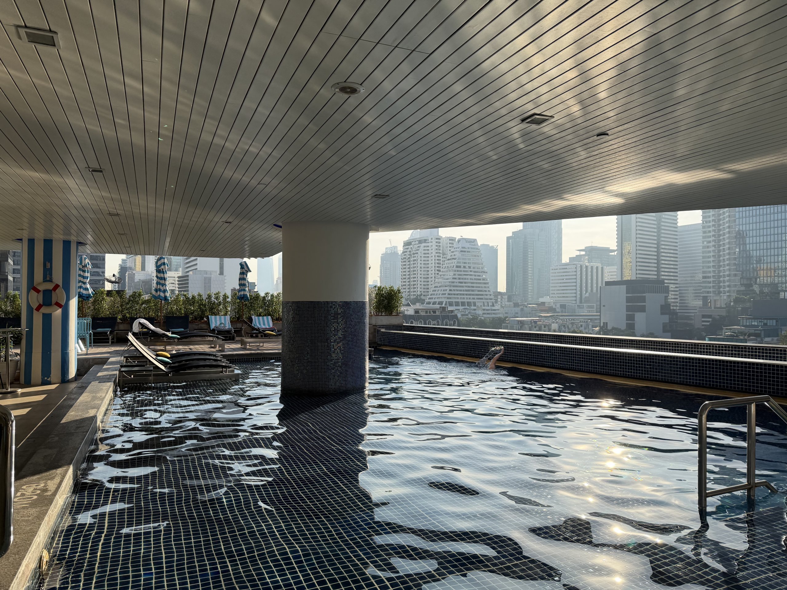 Kolam renangnya tidak terlalu besar, namun memiliki satu keunggulan utama - pemandangan cakrawala Bangkok, termasuk gedung pencakar langit tertinggi ke-2 , King Power Mahanknhon.