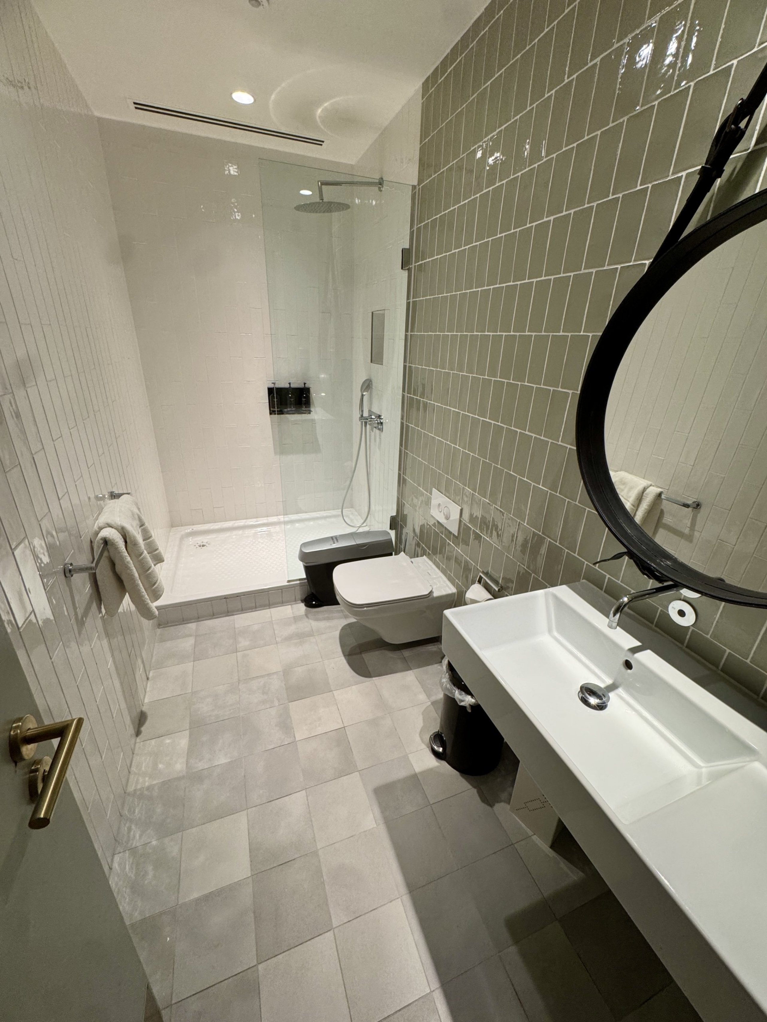 Untuk sebuah lounge yang ditujukan terutama untuk penumpang jarak jauh, kamar mandi adalah suatu keharusan.