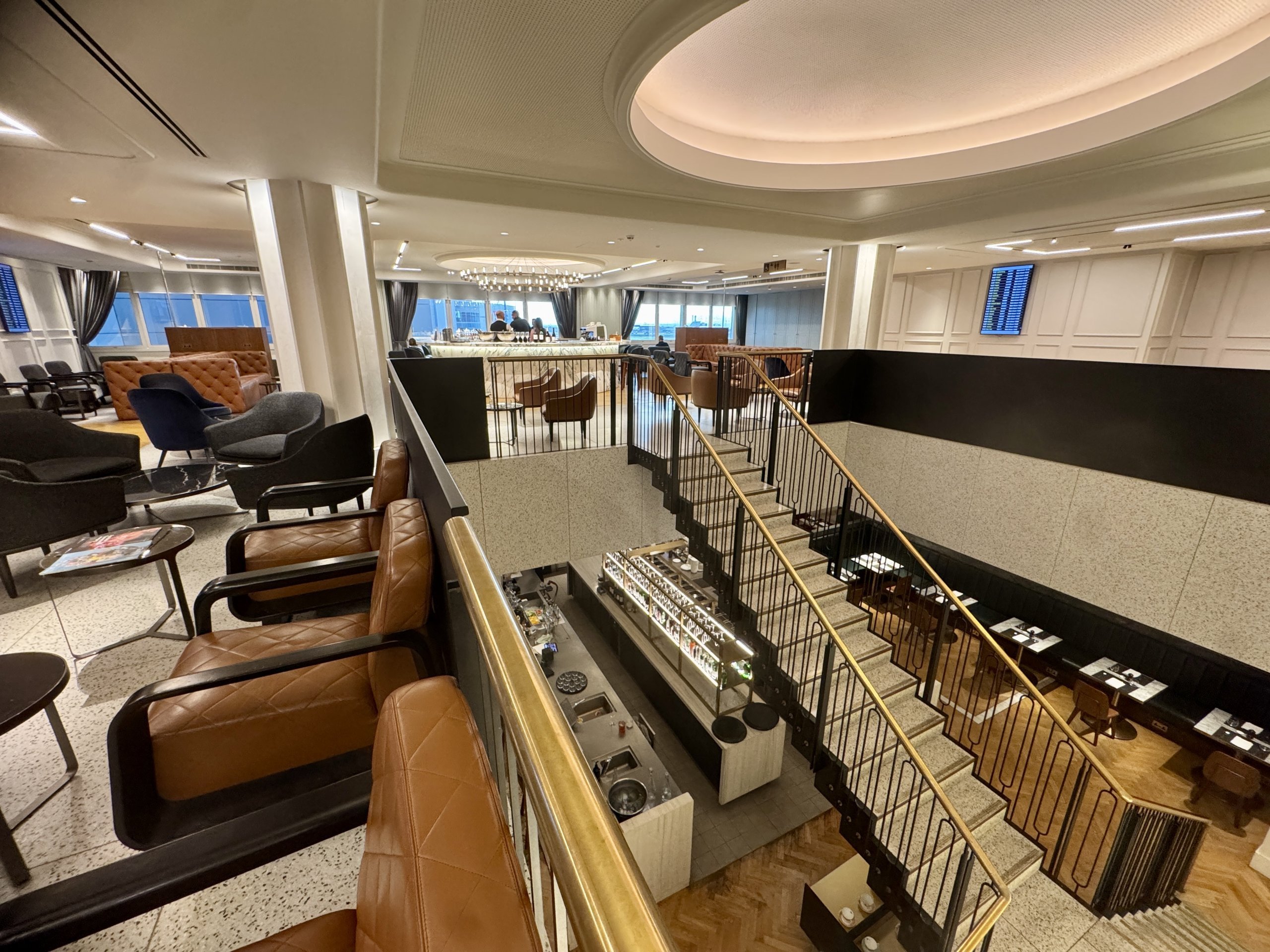 Jika Anda ingin menghabiskan waktu lebih lama di lounge, kami merekomendasikan lantai 1, di mana ada lebih banyak pilihan tempat duduk serta suasana yang lebih tenang.