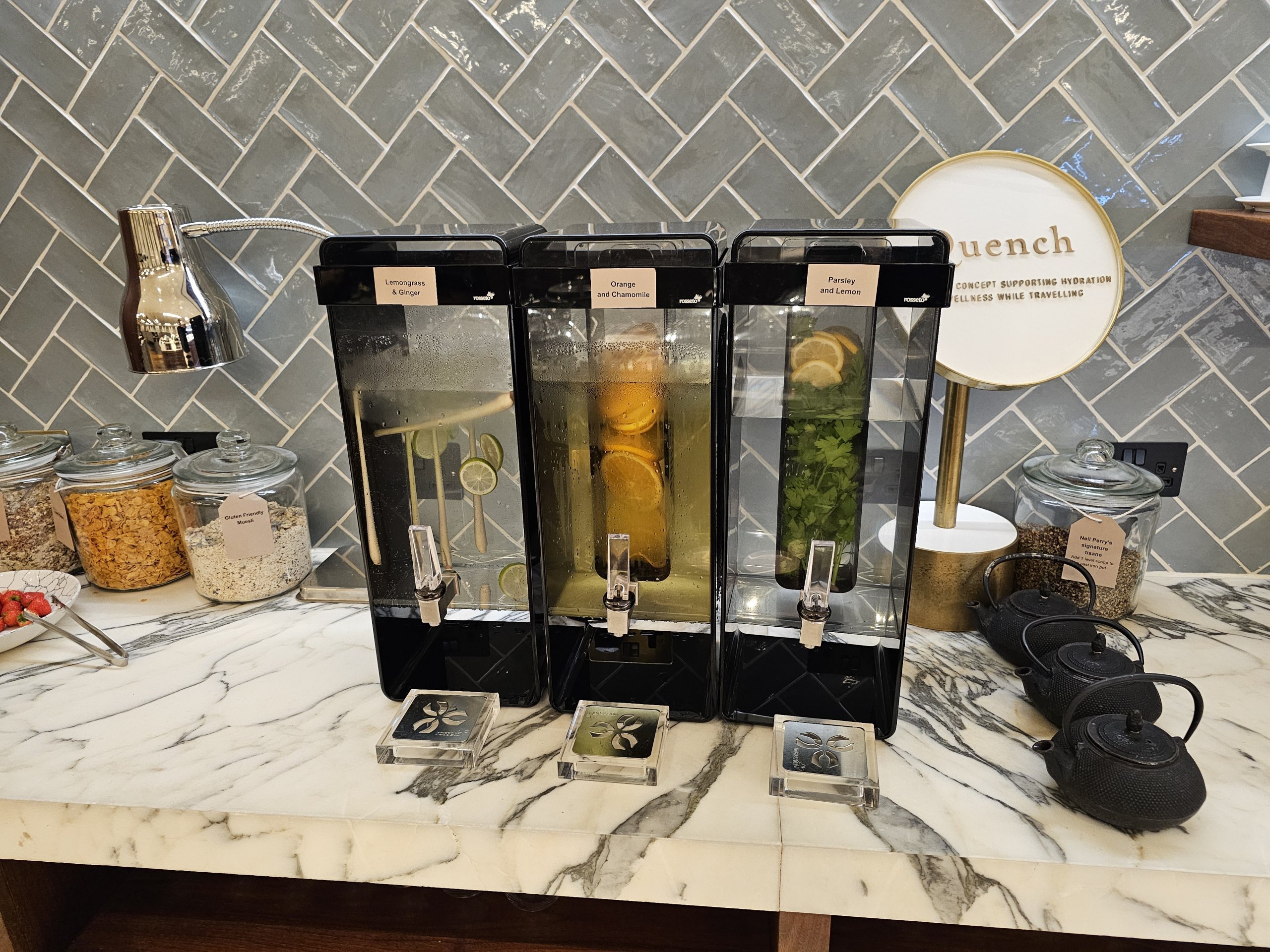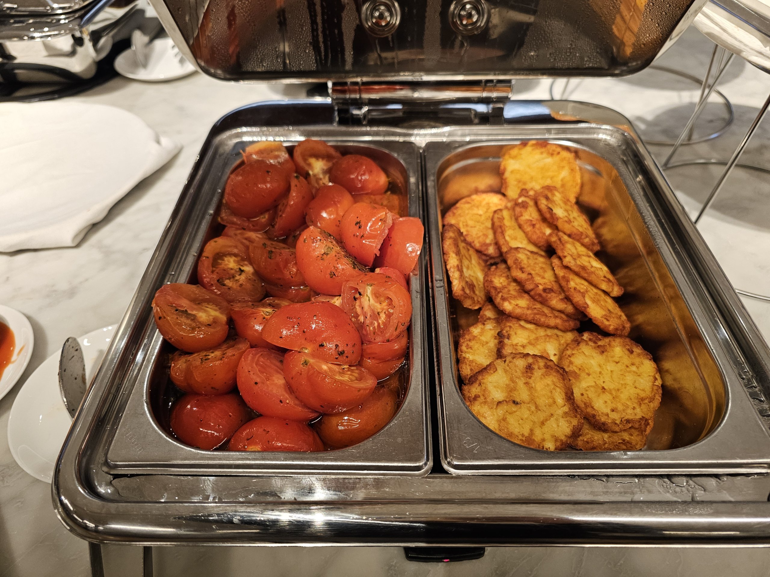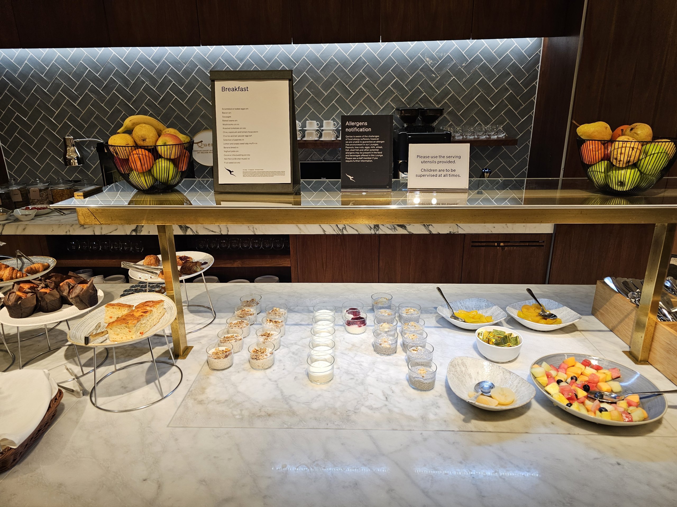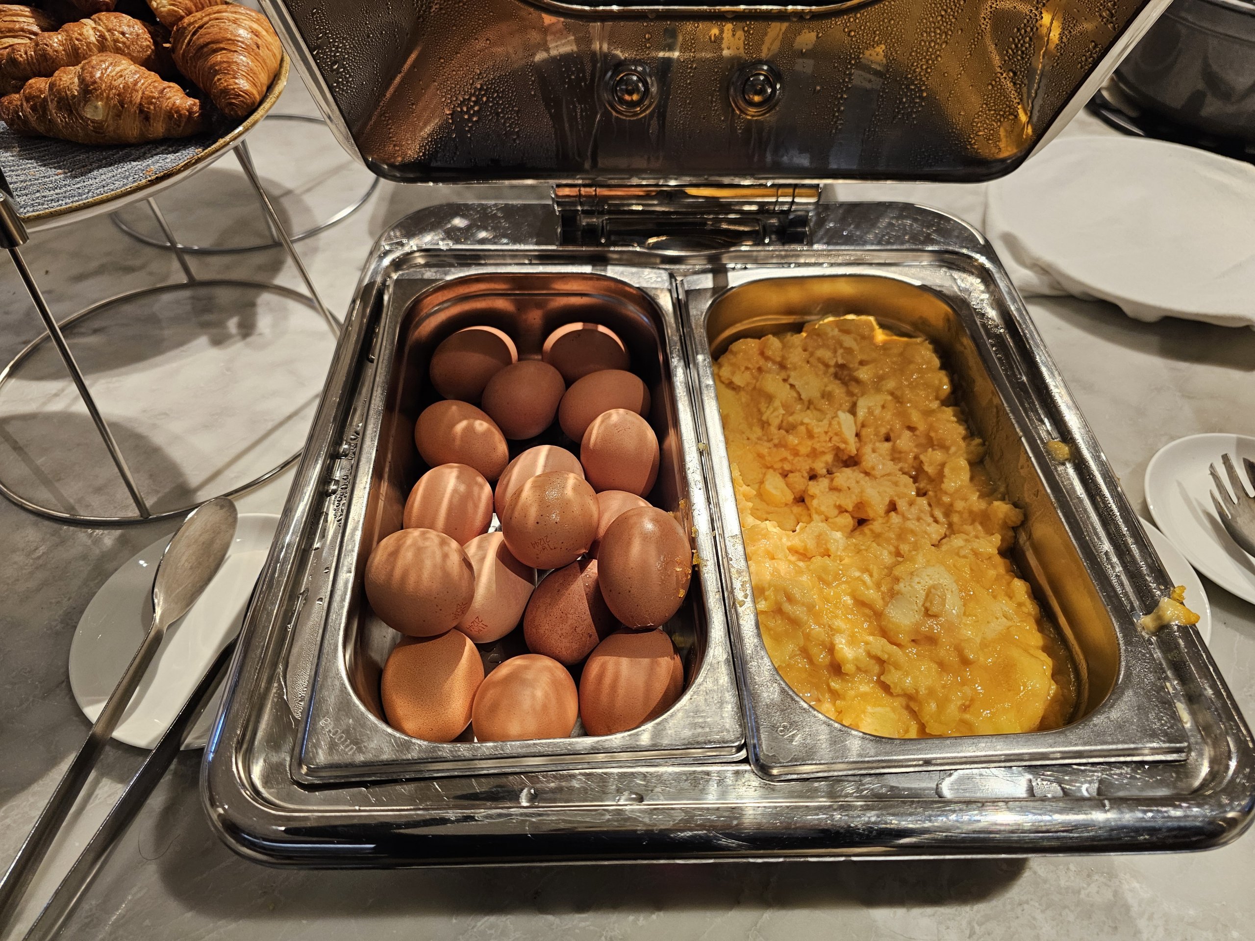 Namun, tidak ada konter yang menyediakan makanan manis lainnya atau mungkin keju atau ham. Secara keseluruhan, penawaran makanannya tidak sebanyak, katakanlah, Cathay Pacific Lounge di sebelahnya.