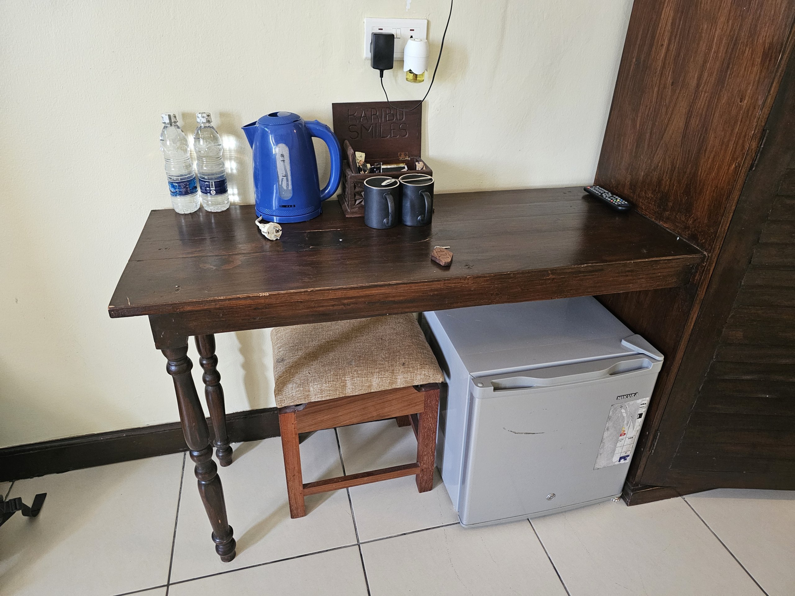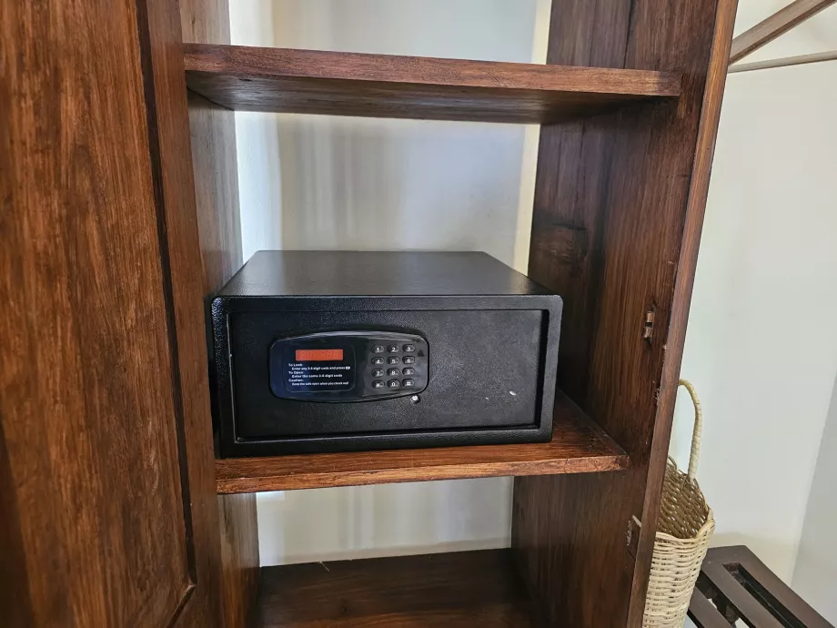 Di dalam kamar juga terdapat brankas, handuk pantai, ketel, kopi dan teh instan.