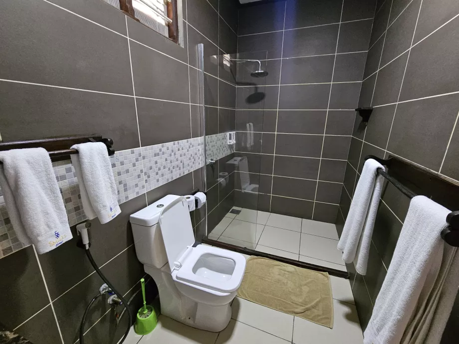 Masalah terbesar yang saya alami adalah dengan kamar mandi. Toiletnya jelas merupakan yang termurah dan dudukan toiletnya tidak terpasang dengan baik.