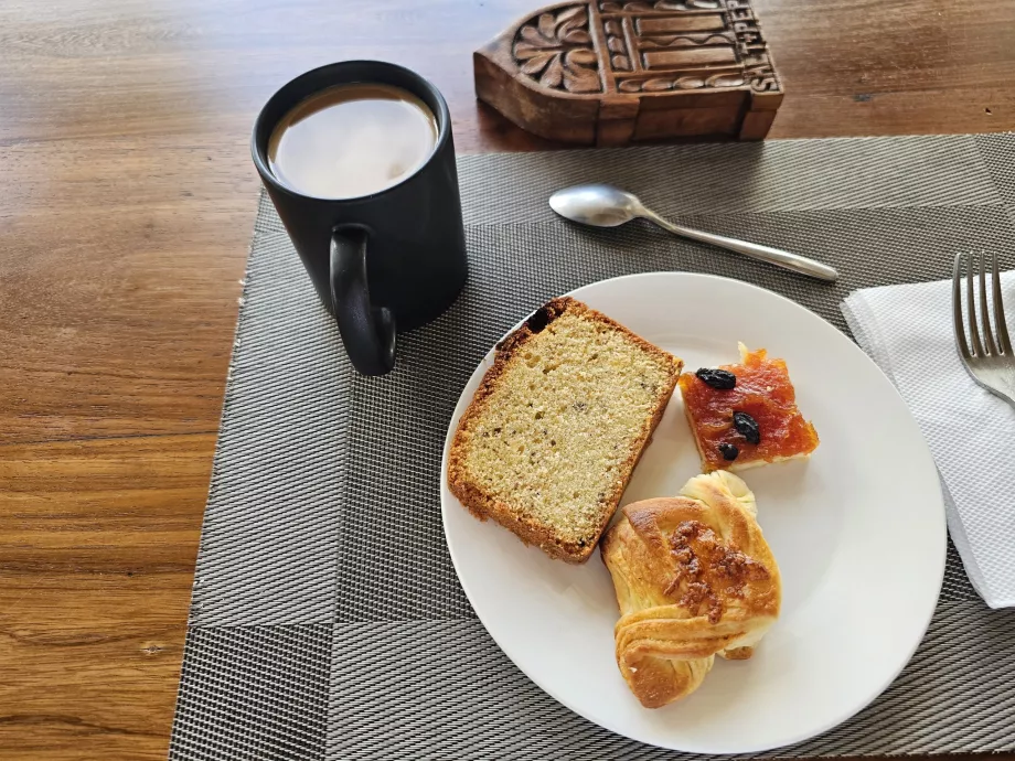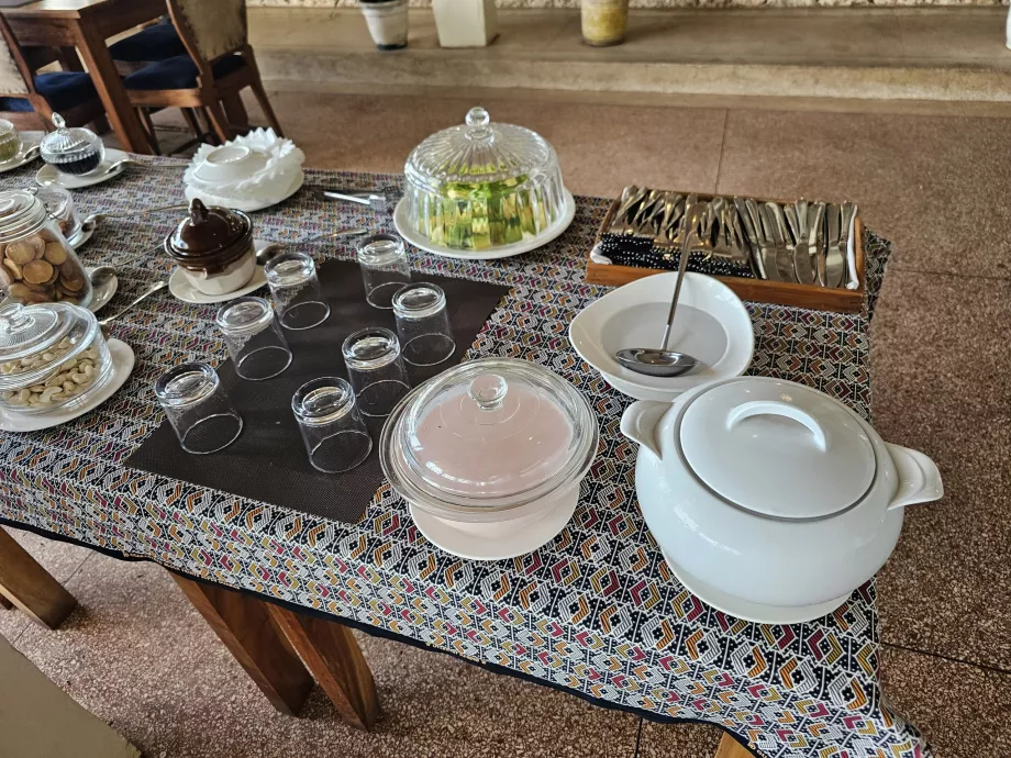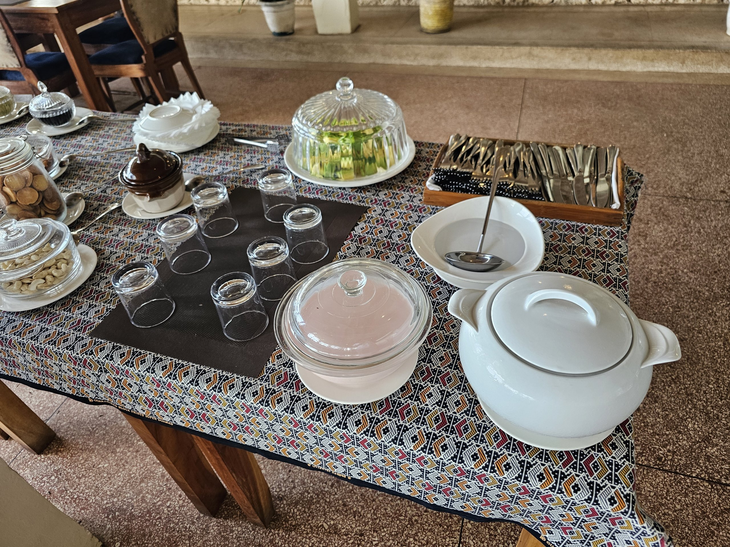 Sajian lainnya termasuk yoghurt, dua hingga tiga jenis buah, kue-kue manis, roti panggang, dan selalu ada dua jenis jus + air.