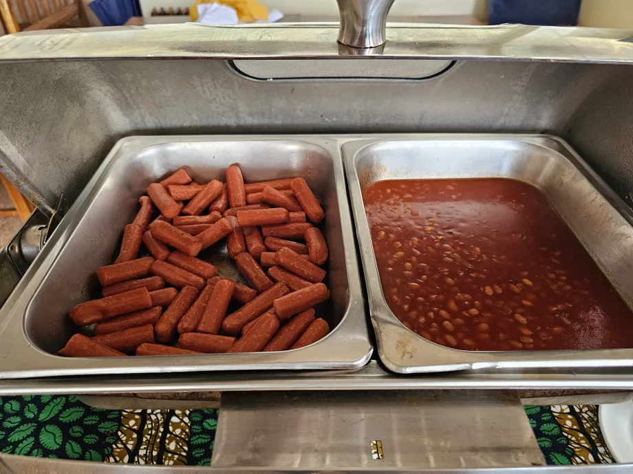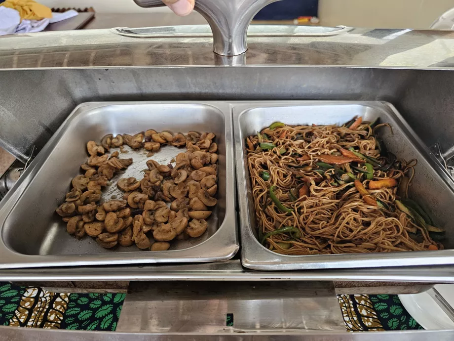 Ada tiga jenis makanan panas yang bisa dipilih - kebanyakan mie atau nasi, sosis dengan kualitas yang sangat buruk, panekuk chapati atau kue-kue lokal lainnya, sayuran yang dimasak, kacang-kacangan atau jamur.