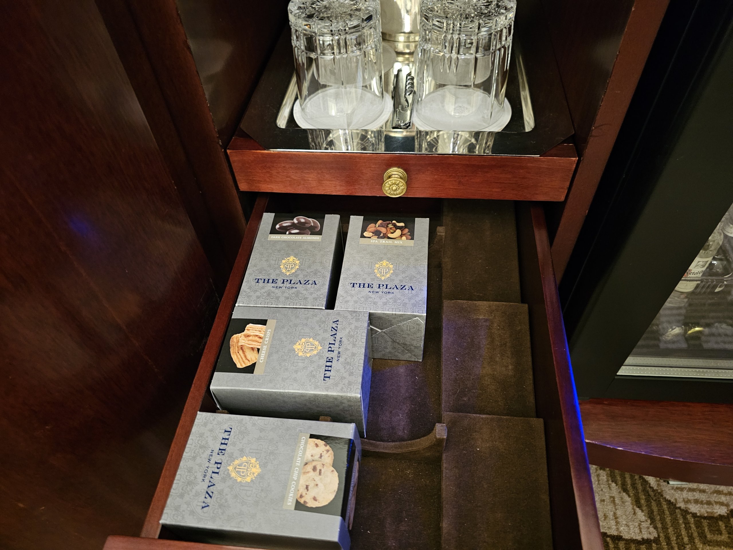 Minibar dilengkapi dengan sangat baik. Misalnya, kami memiliki anggur merah Napa Valley seharga 68 USD, segelas M&M seharga 16 USD, sekaleng Coca Cola seharga 11 USD, atau berbagai pilihan minuman beralkohol dengan harga mulai dari 20 USD hingga 27 USD.