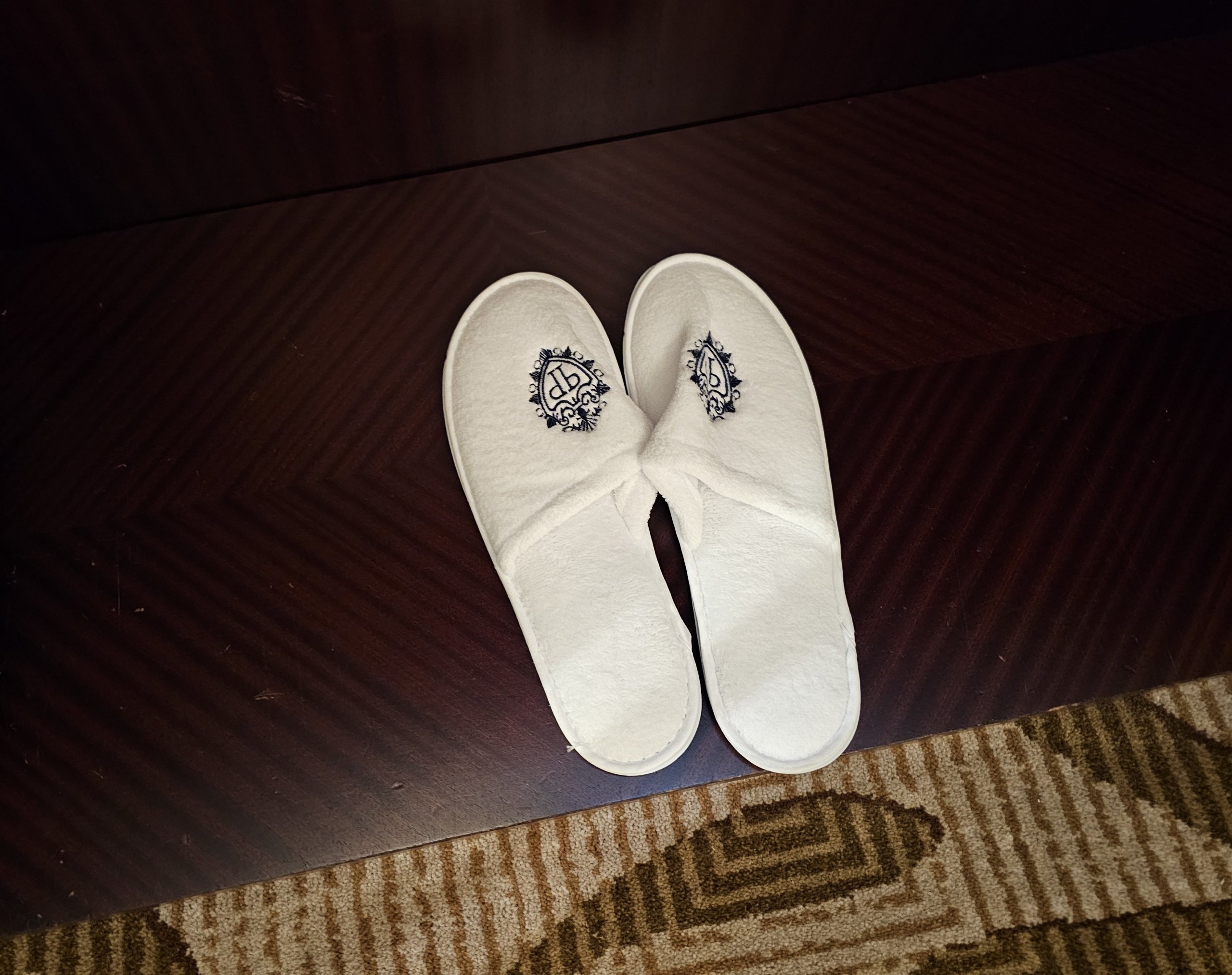 Saat itu hujan, jadi kami naik taksi dan langsung disambut oleh seorang porter yang membantu kami membawa barang bawaan kami ke resepsionis.