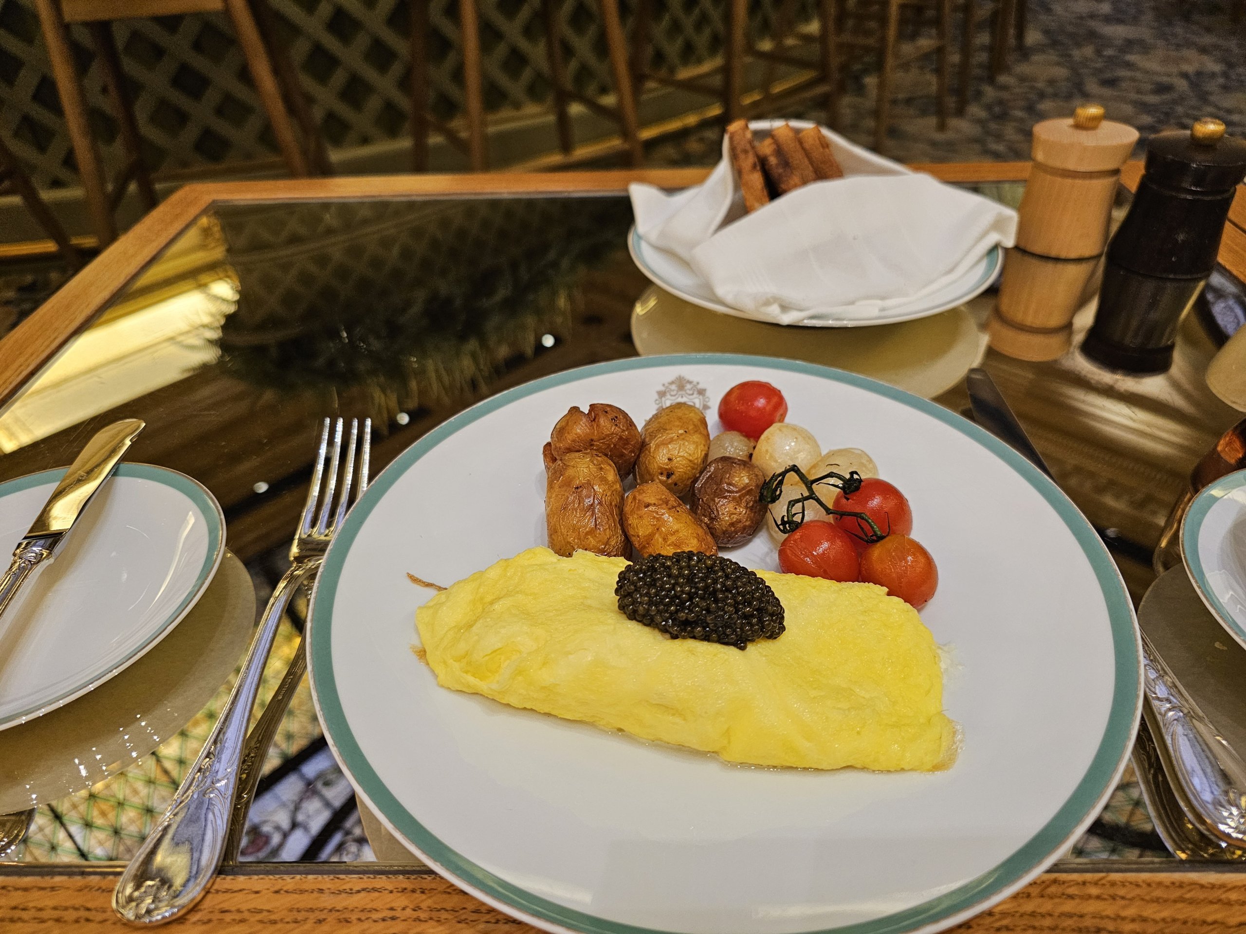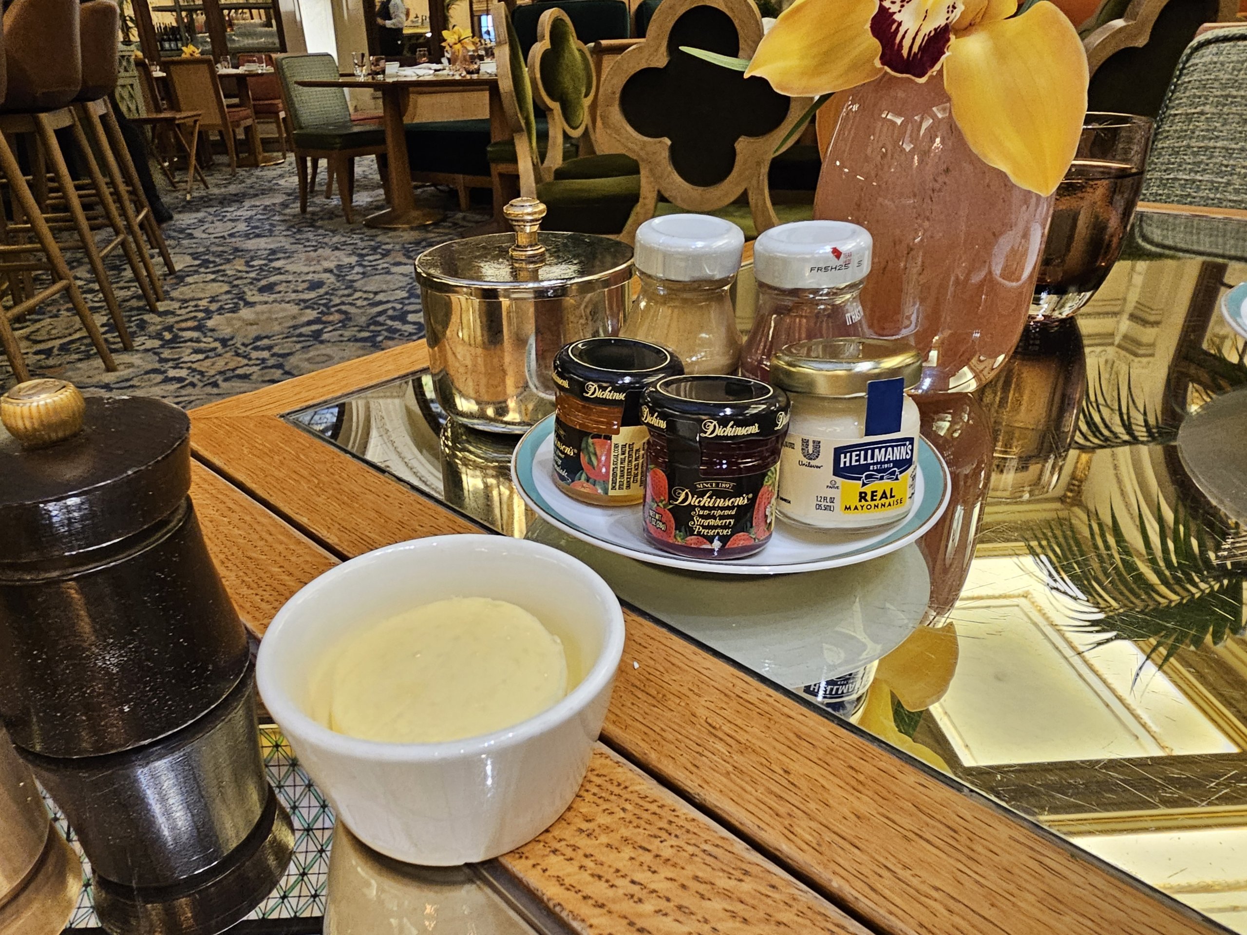 Sarapan disajikan di Palm Court dan Champagne Bar - Anda dapat memesan makanan yang sama di kedua tempat tersebut.